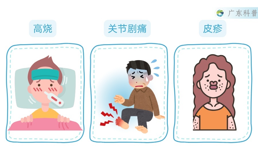 感染基孔肯雅热病毒后,通常3天至7天内出现症状,即使是轻症的滋味也不好受。患者多为轻症,大约一周可治愈,重症及死亡病例较为少见。